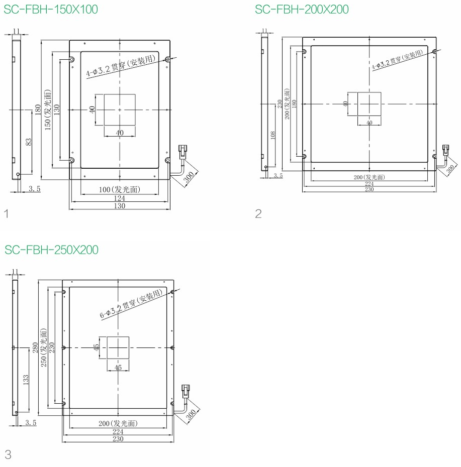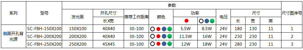 SC-FBH-150100-W SC-辰科代码 FBH-侧面开孔背光源 150-发光区长度 100-发光区宽度 W-颜色