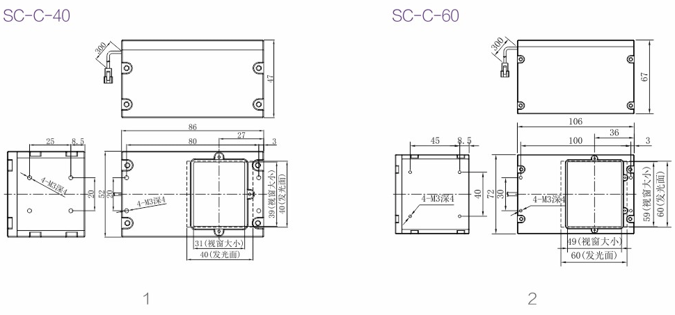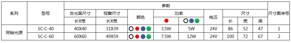 SC-C-40-W SC-辰科代码 C-同轴光源 40-发光面 W-颜色